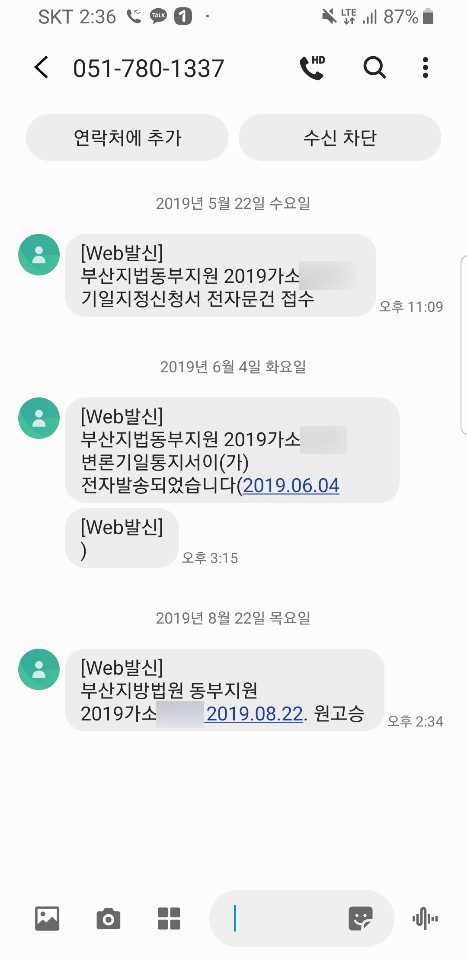1차 변론기일 당일 바로 선고가 되었습니다. 법정싸움을 시작한 지 9개월 만이네요.
