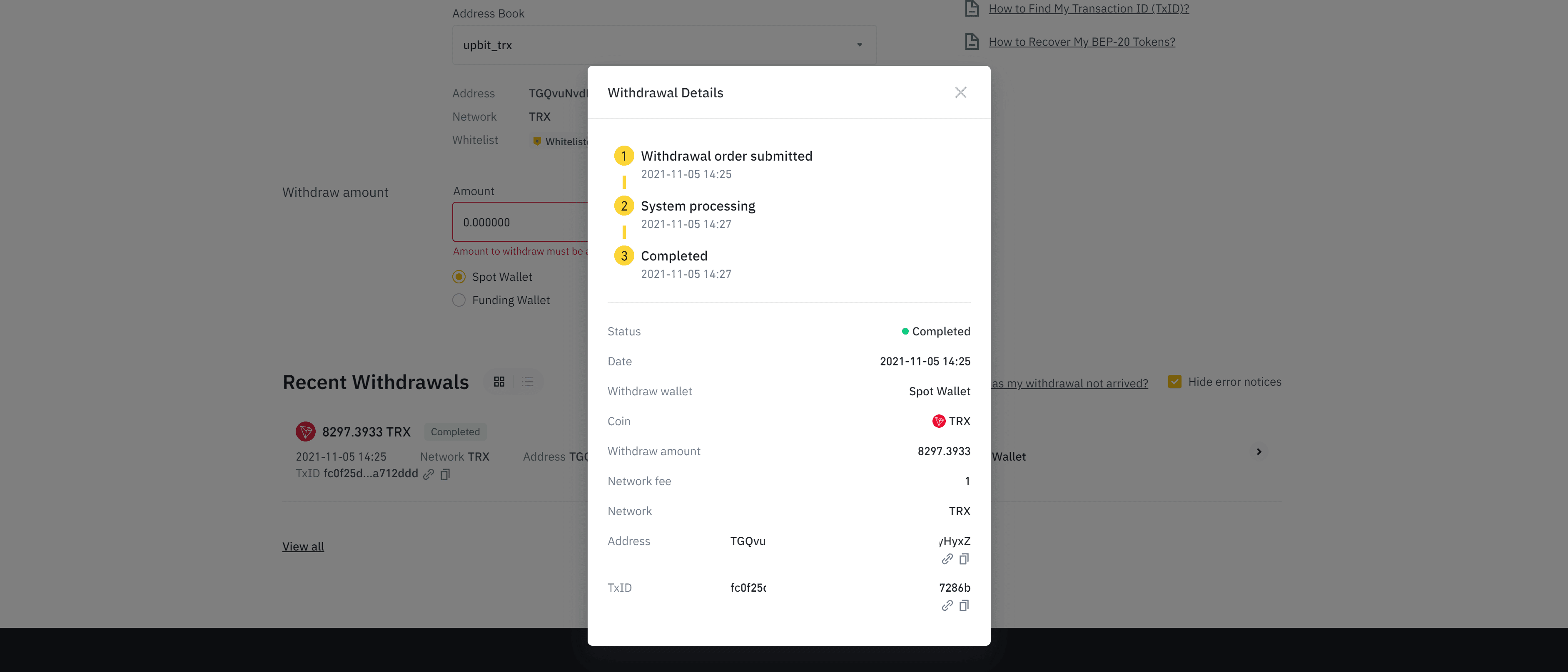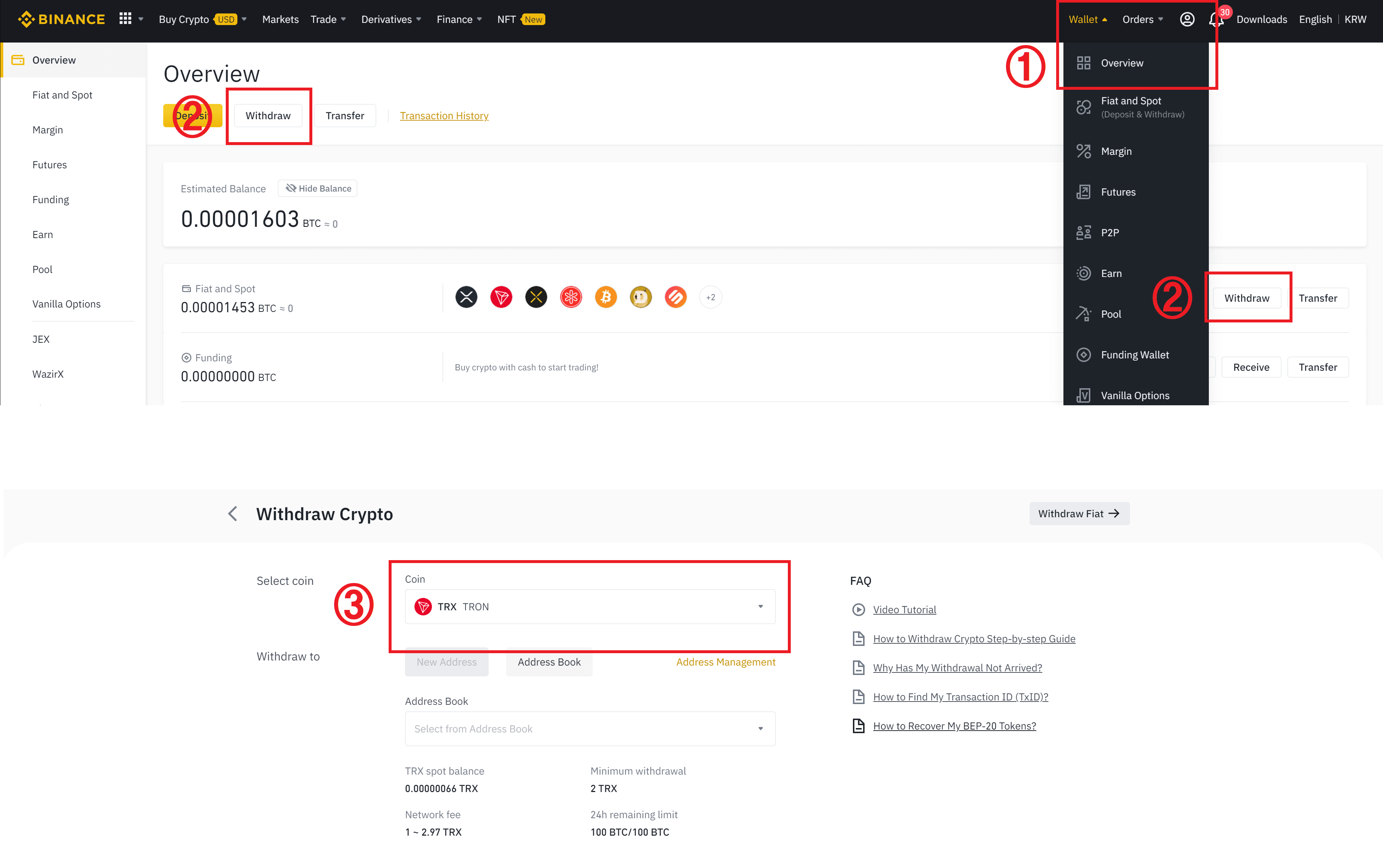 오늘은 바이낸스에서 업비트로 트론(TRX) 코인을 출금 전송하는 방법에 대해서 알아보겠습니다.