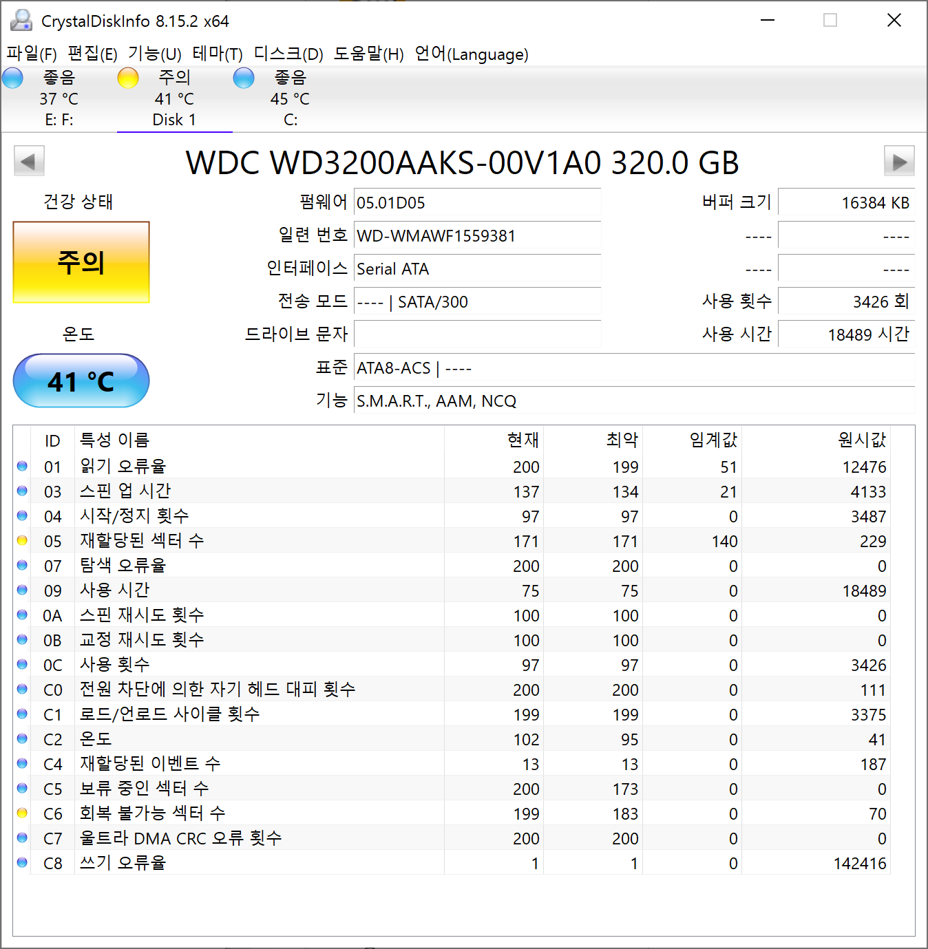 다만, 회복 불가능 섹터 수가 크게 줄어들었고, 쓰기 오류율도 절반 이상 줄어들었네요.