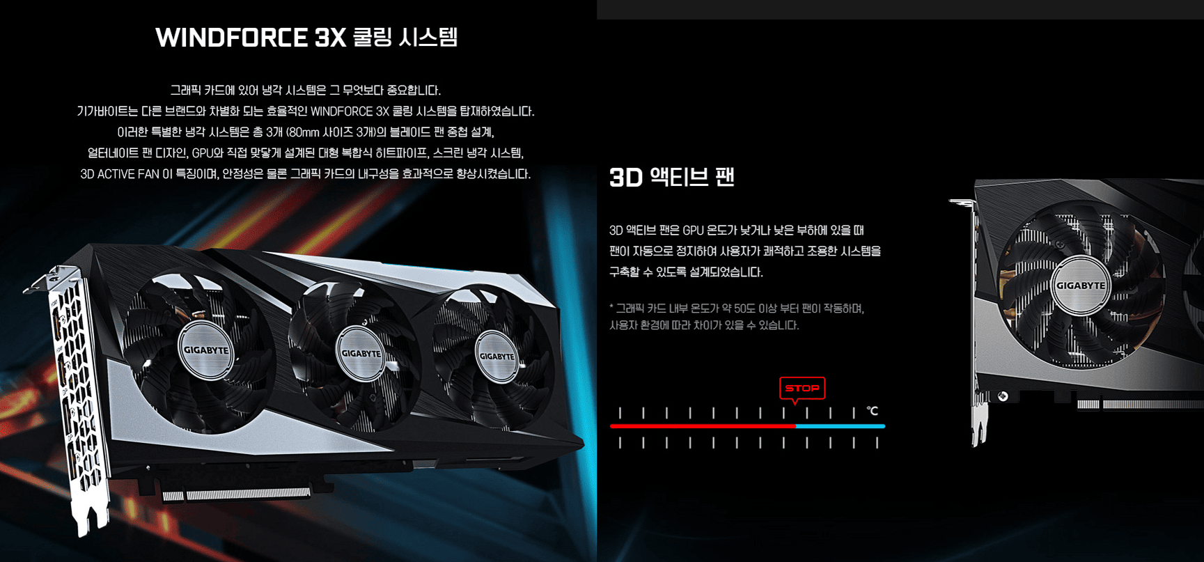 두 번째 이유는 그래픽카드들도 대부분, 자체적인 쿨링 팬의 발열 제어 설정이 되어있습니다.