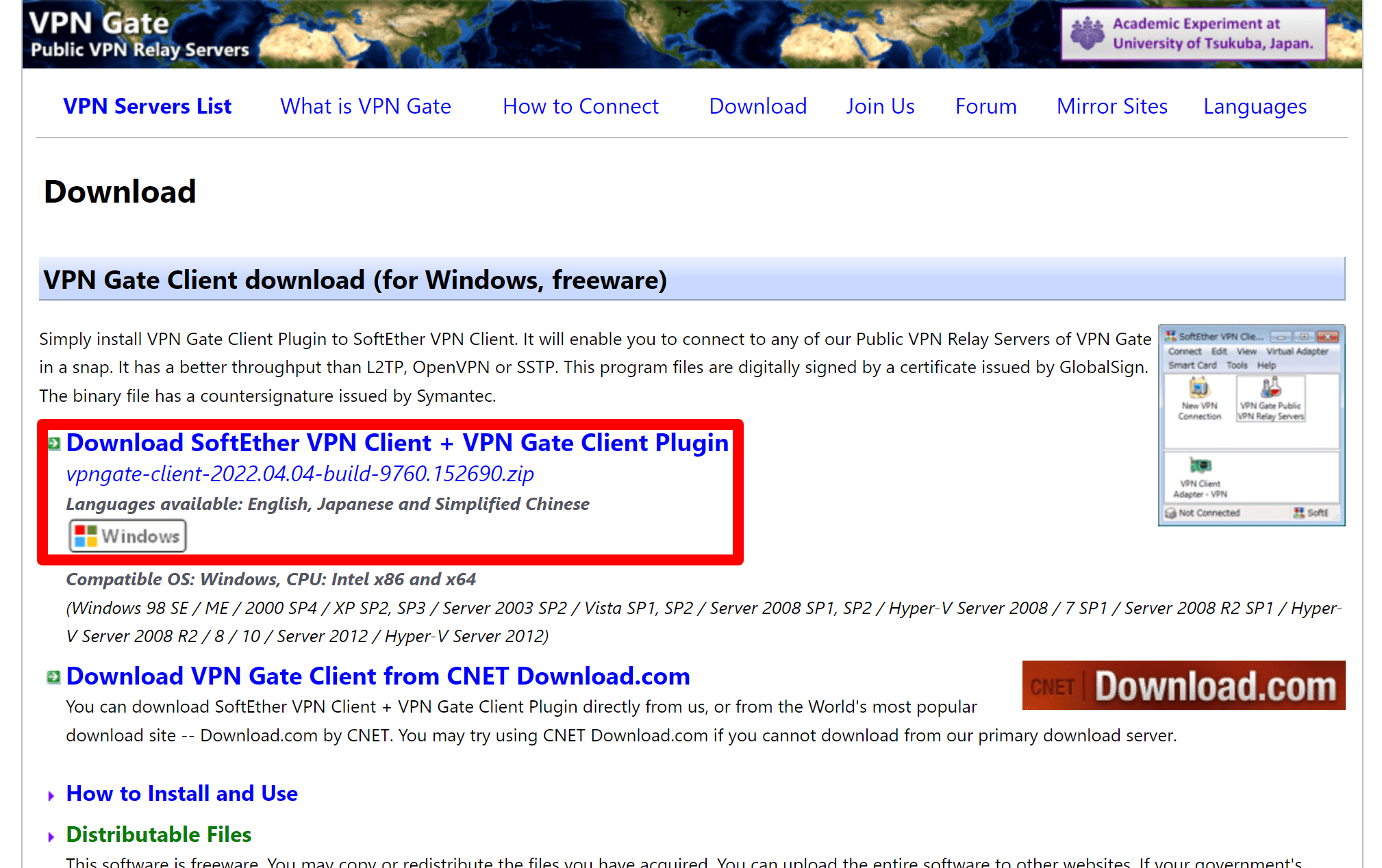 Download VPN Gate Client