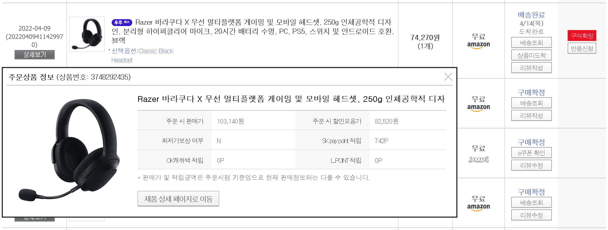 안녕하세요. 오늘은 11마존 즉 11번가 아마존에서 구입한, 레이저 바라쿠다 X(RAZER Barracuda X ) 리뷰를 진행해보려고 합니다.